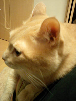 その上、最近クローゼットの寝床のカゴごと上から2回ほど落ちるし・・・私のPCのいすの背に乗って色々考えておらるようです。