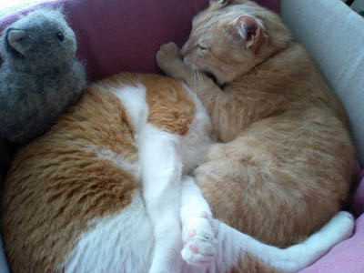 夜になってから37度。 みごとな微熱 朝になって下がったと思いきや、学校行く準備もしていたのに「おなかいたい・・・(TT)」→また37度。 今日はお休みしましたが、昼寝の済んだ15時ごろには熱も下がり、王女様と一緒にママゴトしたりしておりました。 どうやら、昨日の「いきいき」で野球をやりすぎて水筒のお茶が無くなり脱水か熱中症になりかけてたご様子。これから水筒のお茶増やさないと(^^;それとも容量の大きいのに買い替え? そして今度は私がまたもや撃沈。今年本当におかしいよ、私の体調。 さて、今日ものんきなこの二人。 ねぎちゃんのほうが先に入ってたんですが、 何故ちゅみはそんなにねぎちゃんにくっつきたいのか? 狭くなってるので、ちょっと嫌そうな顔してる。アンニュイねぎーちゃん。 次は見つからないように一人で入りなさいね。
